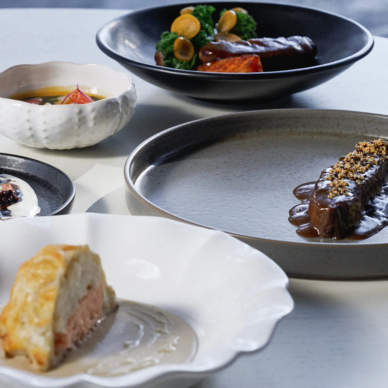 Мурманский лосось, муксун и балтийская килька, оленина и лось, локальные продукты карельского региона: сморчки, боровики, белая морковь, пастернак, морошка и, конечно, таёжные травы. Пока за окнами меняются оттенки Ладоги, вы открываете для себя самобытные вкусы северной кухни в современном прочтении талантливого шефа.